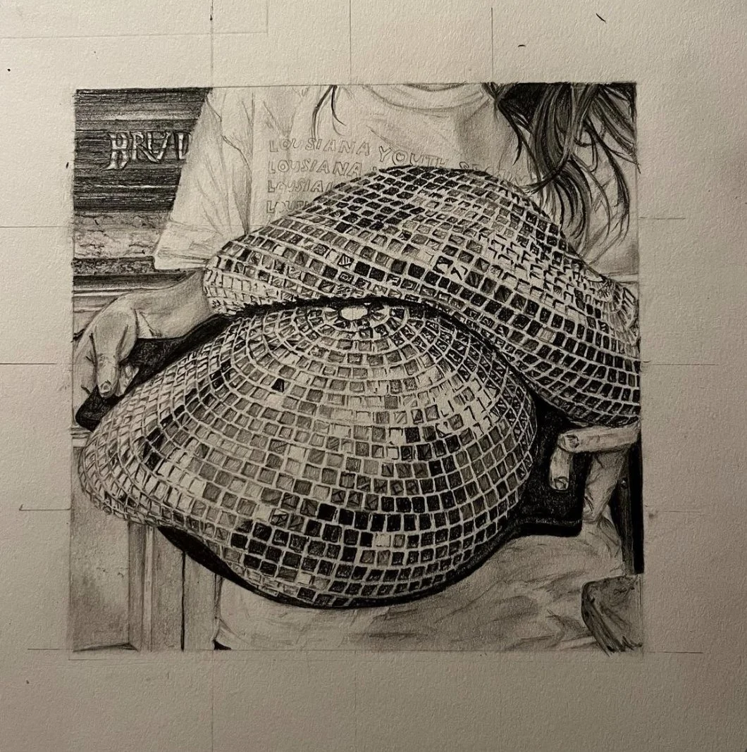 “Disco Dinner”: a 6x6 inch pencil drawing for one of my drawing courses.