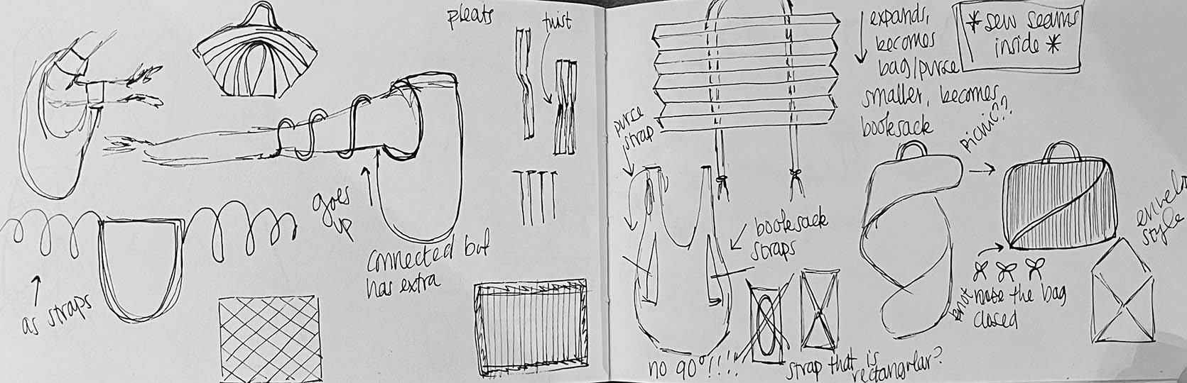 The third week of this project we were assigned to create three mini backpacks that had similarities to them. My similarities were the handles and straps — each of them were fish-braided cardboard.