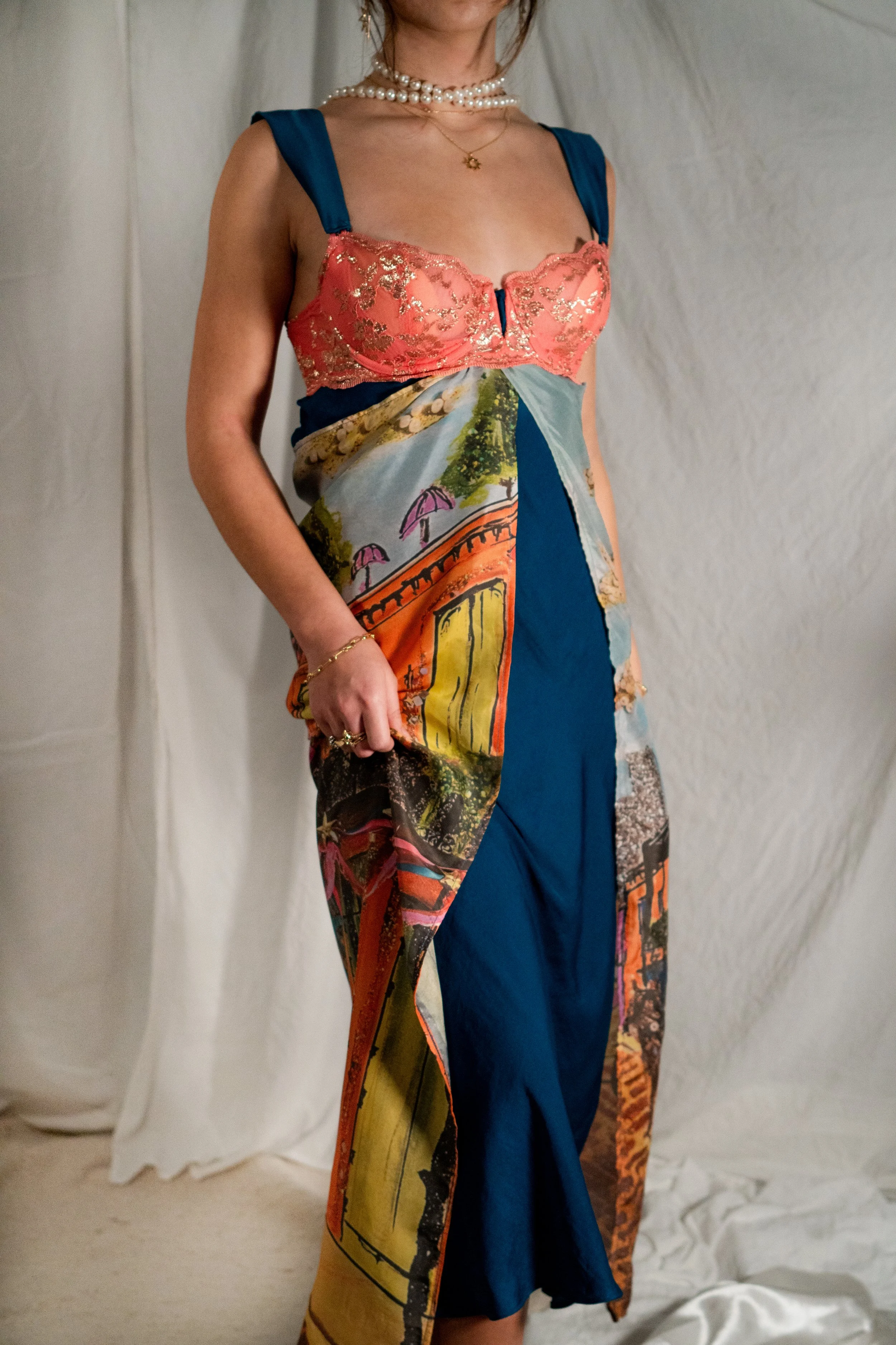 I created this dress for my first textile course. I created the dress, and then printed my personal drawing onto silk fabric and created a scarf that was detachable from the dress for more versatility.