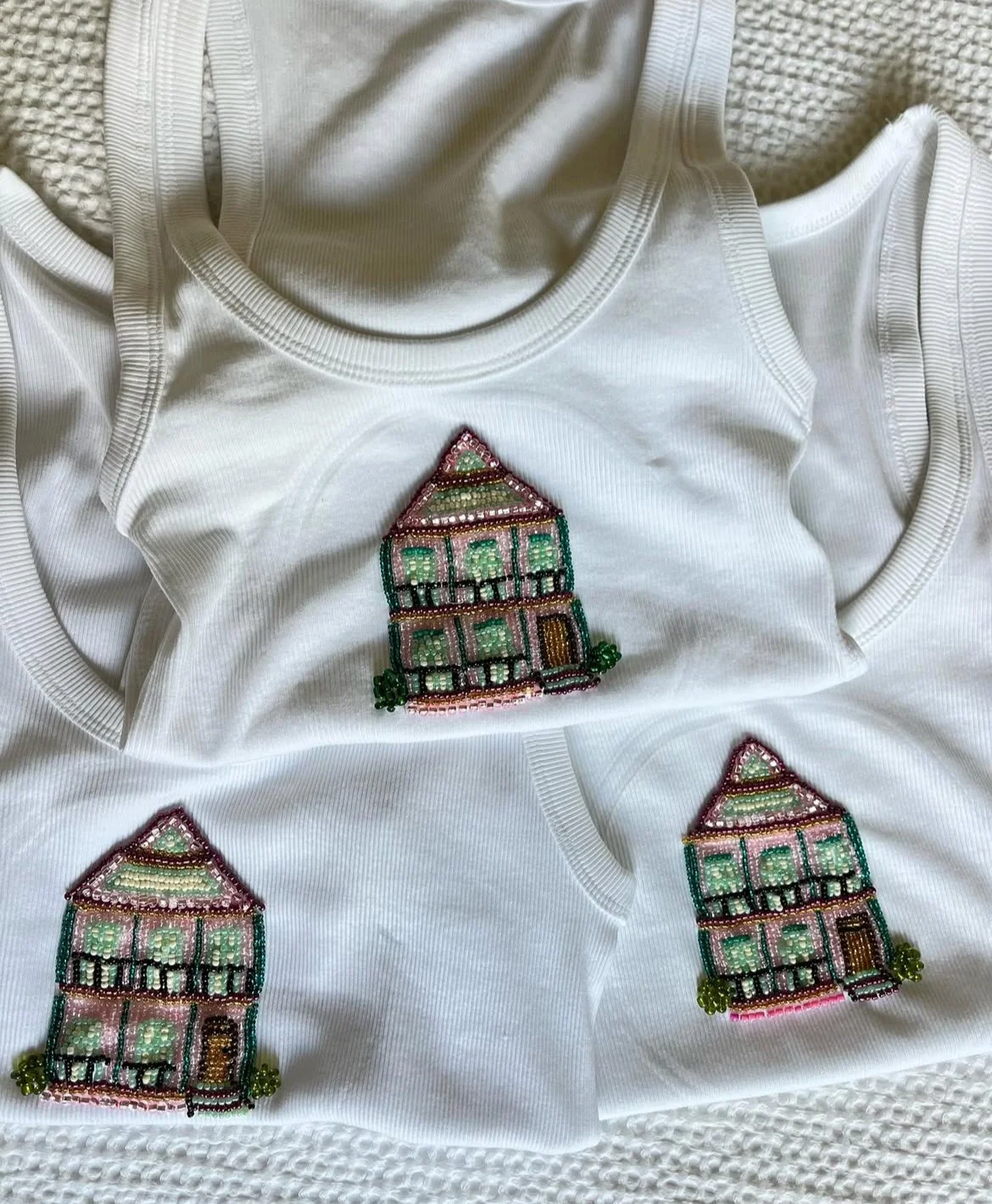 These are some shirts that I designed and beaded for a boutique in New Orleans. They were inspired by the shotgun houses and architecture found in uptown New Orleans.